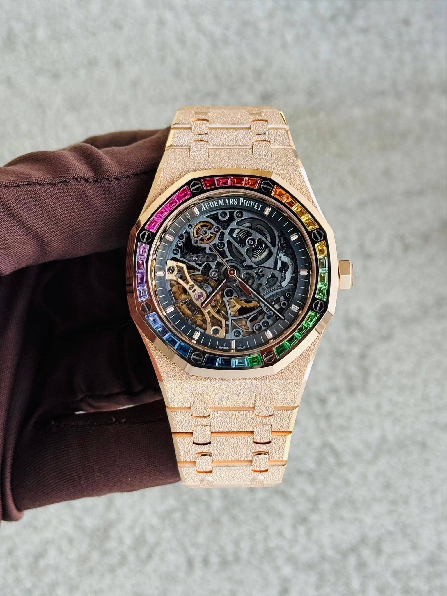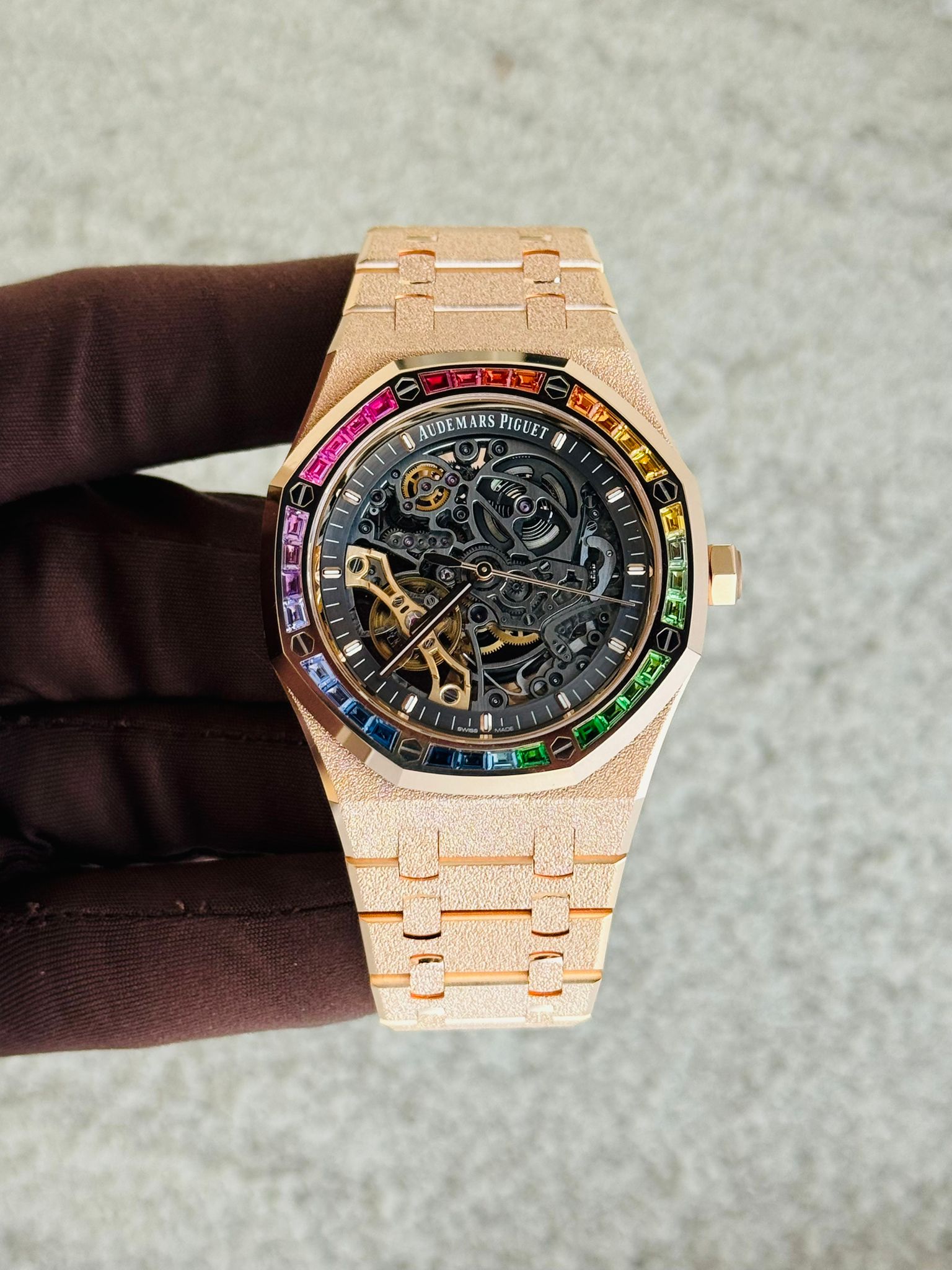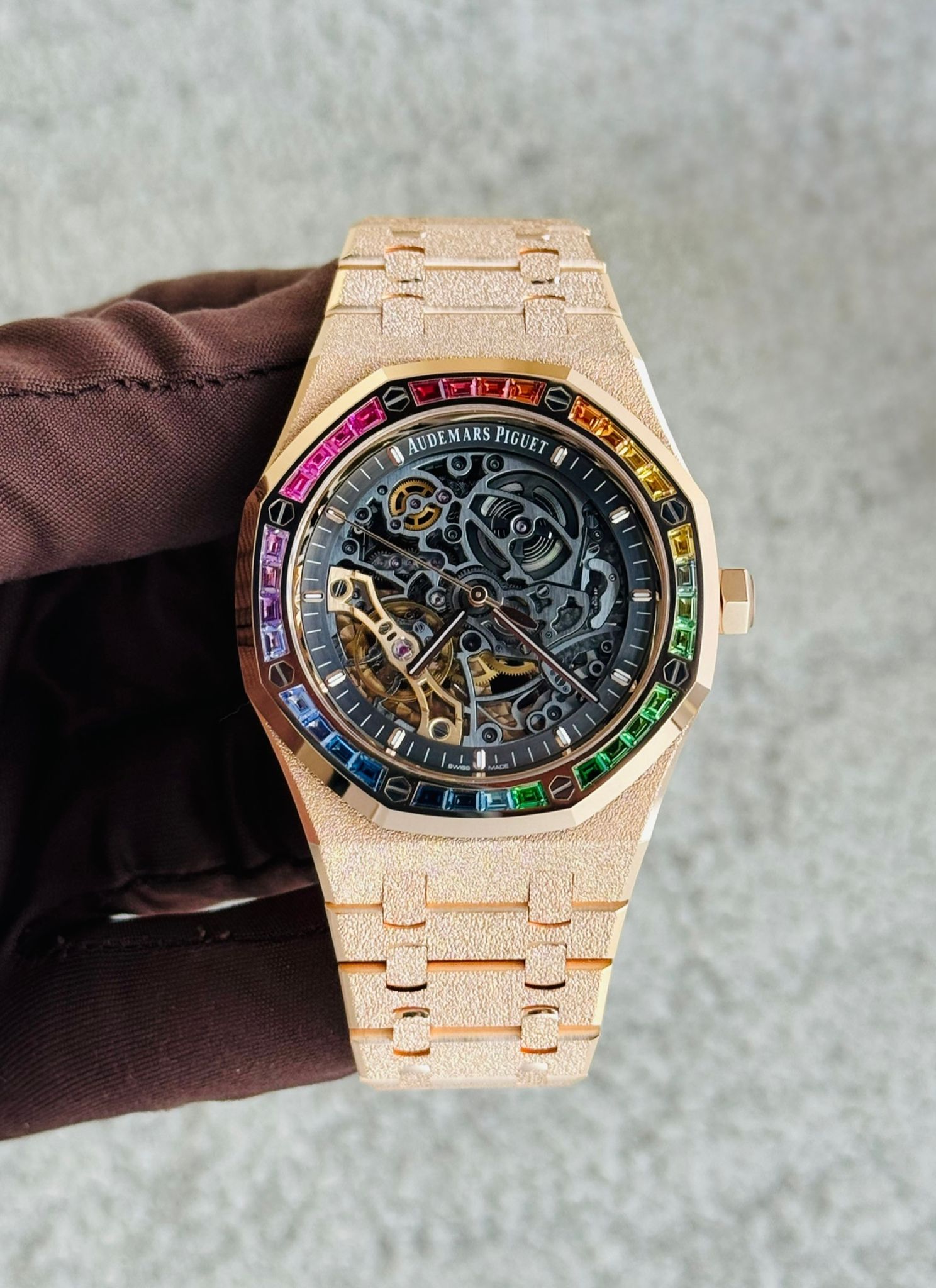 Celebrate the legacy of luxury watchmaking with the Audemars Piguet AP 15412or rainbow, a stunning timepiece released in 2023 to commemorate of the iconic Royal Oak. This watch encapsulates the perfect blend of tradition and innovation, making it a must-have for collectors and enthusiasts alike. Elevate your collection with the Audemars Piguet AP 15412or rainbow, This exceptional watch is not just a celebration of history but a statement of elegance and sophistication, embodying the pinnacle of Swiss watchmaking excellence.