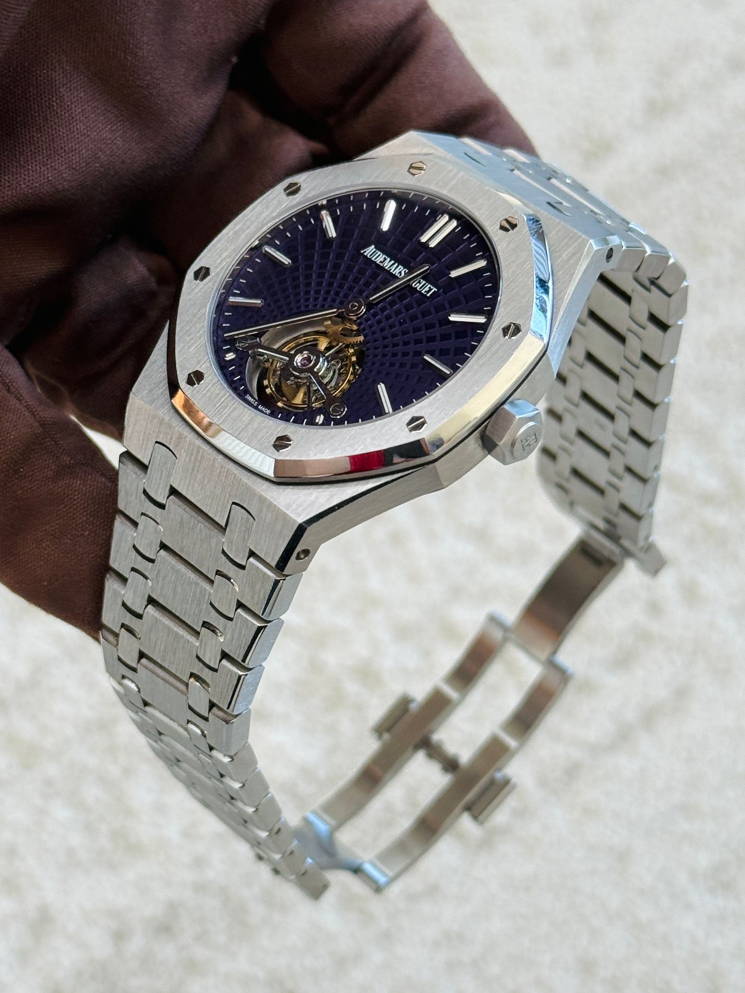 Celebrate the legacy of luxury watchmaking with the Audemars Piguet AP 26522ST , a stunning timepiece released in 2023 to commemorate of the iconic Royal Oak. This watch encapsulates the perfect blend of tradition and innovation, making it a must-have for collectors and enthusiasts alike. Elevate your collection with the Audemars Piguet AP 26522ST . This exceptional watch is not just a celebration of history but a statement of elegance and sophistication, embodying the pinnacle of Swiss watchmaking excellence.